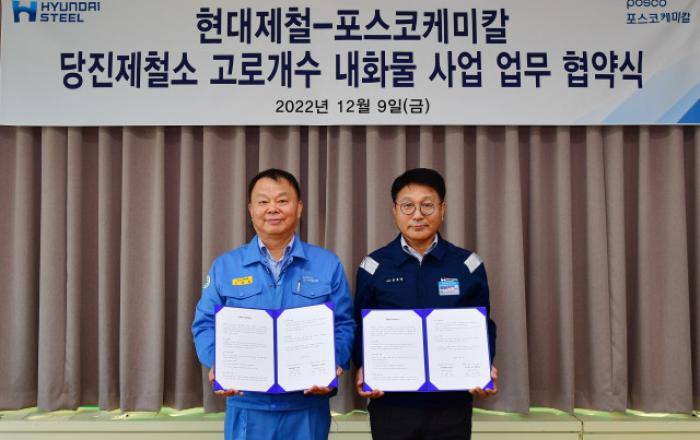 현대제철이 당진제철소 1고로 개수를 위한 작업에 돌입했다.현대제철은 9일 포항 포스코케미칼 본사에서 안동일 사장과 포스코케미칼 민경준 사장이 참석한 가운데 ‘당진제철소 고로 개수를 위한 내화물 사업 업무 협약(MOU)’을 체결했다.이번 협약은 2010년 1월 가동을 시