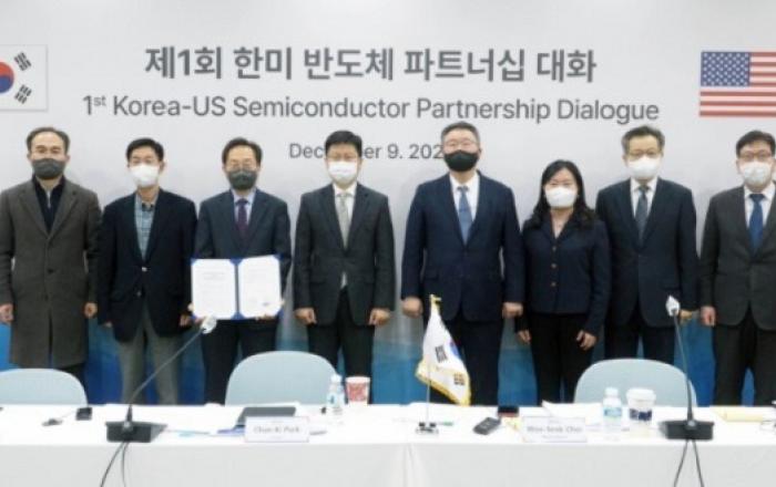 한미 양국이 반도체산업 협력을 위해 머리를 맞대고 협력방안을 모색하기로 했다.산업통상자원부는 9일(미국 시각 8일) 제1차 한미 반도체 파트너십 대화(이하 반도체대화)를 개최했다고 밝혔다.코로나19 상황을 고려해 화상으로 개최된 이번 회의에는 한국측에서 산업부, 반도체
