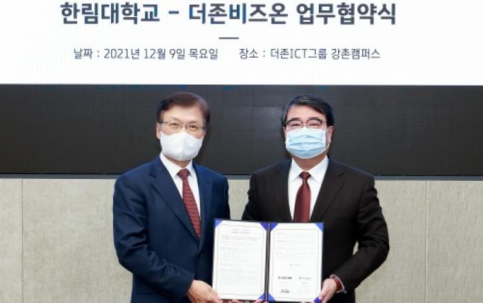 ㈜더존비즈온은 9일 한림대학교와 '디지털 헬스케어 공동연구 수행 및 디지털 헬스케어·IT 전문인력 양성'을 위한 업무협약을 체결했다고 밝혔다.이날 협약식에는 더존ICT그룹 김용우 회장, 더존에듀캠 윤성태 대표, 더존비즈온 송호철 플랫폼사업부문 대표와 한림대 최양희 총장