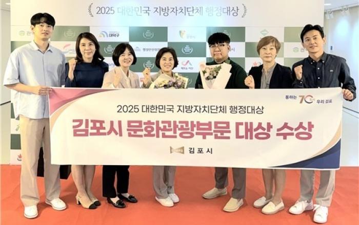 김포시(시장 김병수)가 ‘2025 대한민국 지방자치단체 행정대상’에서 기초자치단체 문화·관광 부문 대상을 수상했다. 시상식은 19일 서울 KG타워 하모니홀에서 열렸다.‘대한민국 지방자치단체 행정대상’은 이데일리가 주최하고 행정안전부 등이 후원하는 권위 있는 상으로, 전