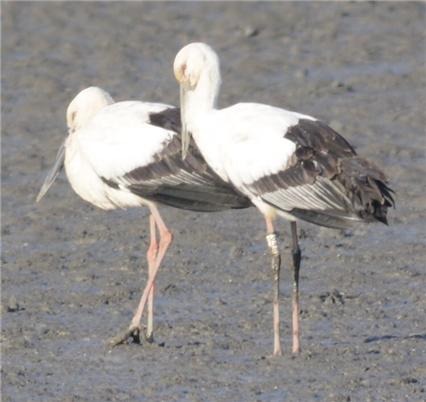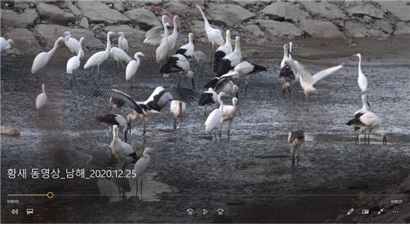 국립생태원 연구진은 지난해 12월 25일 전남 해남에서 월동하고 있는 황새 18마리를 발견하고 이 중 1마리가 세계자연기금 러시아 지부에서 방사한 황새(가락지 녹-048)임을 확인했다.