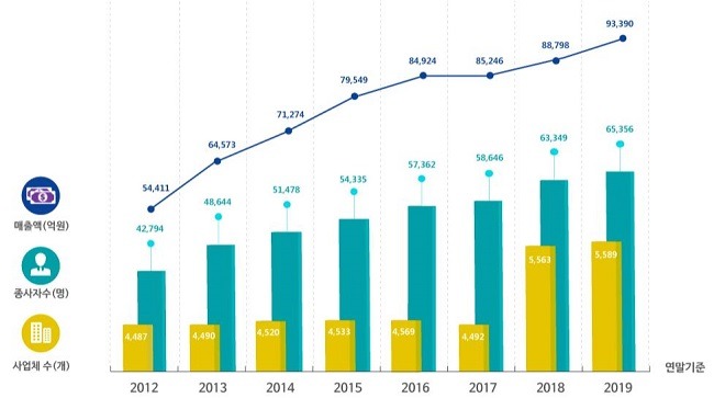 매출액·종사자 수·사업체 수 전년 대비 각 5.2%, 3.2%, 0.5% 증가