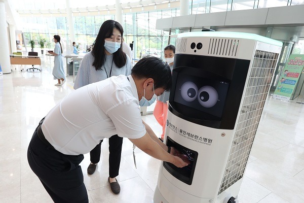 병원 안에서 5인 이상이 한데 모여 있으면 소리를 내 사회적 거리 두기를 요청하기도 하고, 아이들도 수시로 손 소독을 할 수 있도록 분사 위치까지 세심하게 고려해 설계했다. 야간에는 자외선을 이용해 키오스크 주변 내 소독도 실시한다. 소독제를 찾아 나설 필요 없이 방역로봇 앞에서 언제든 손만 내밀면 쉽게 소독이 가능해지는 것이다.