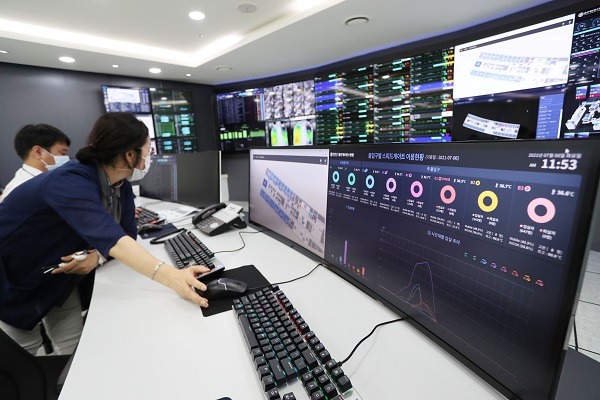 이날 오전 5G 방역로봇이 자율주행으로 건물 내부를 이동하며 마스크 착용과 사회적 거리두기 안내(48회)를 한 정보는 통합반응상황실(IRS: Integration & Response Space)로 실시간으로 전송된다.