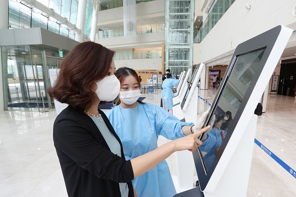 6일 오전 용인세브란스병원 1층 로비. 문진표 작성, 발열 체크 등을 위해 환자와 가족, 직원들로 붐벼여야 할 출입구 일대가 한산했다. 지난해 3월 개원 이후부터 병원 내 출입구에 설치된 ‘전자 문진 키오스크’ 덕분이다. 전자 문진 키오스크는 말 그대로 수기가 아닌 전자 방식으로 키오스크에서 문진표를 작성하는 것을 말한다. 검사 대기시간 단축, 수기작성 오류 축소와 함께 종이를 주고받는 데 따른 교차감염을 차단할 수 있어 코로나19 상황에서 특히 각광을 받고 있다.