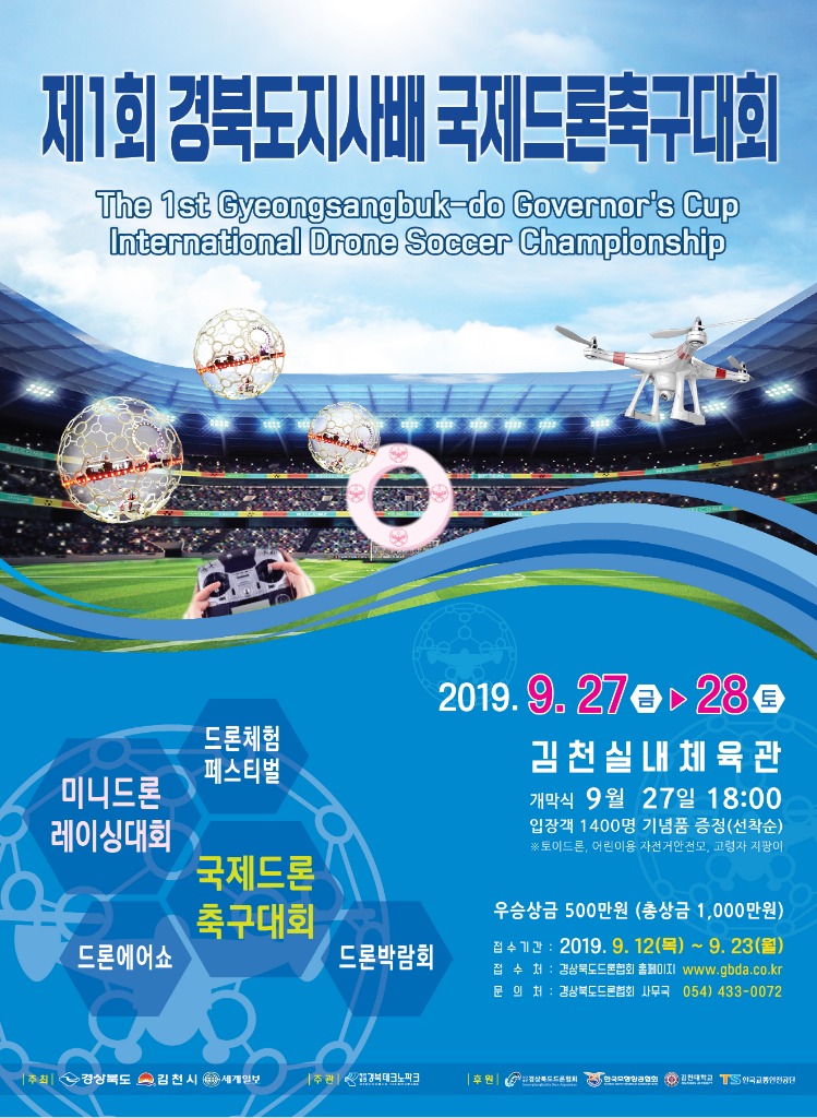 경상북도는 27일부터 양일간 김천실내체육관에서 ‘제1회 경상북도지사배 국제드론축구대회’를 개최한다고 밝혔다.