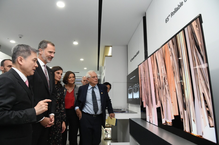 펠리페 6세 국왕은 LG사이언스파크 이노베이션 갤러리에서 롤러블 TV, 자율주행 솔루션, 로봇 등 LG의 첨단 제품도 살펴봤다.