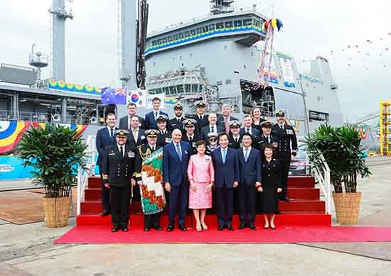 현대중공업이 뉴질랜드에서 수주한 최신예 군수지원함을 명명(命名)했습니다.