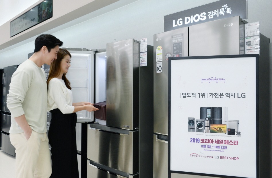 LG전자는 김장철을 앞두고 관심이 높아지고 있는 디오스 김치톡톡 김치냉장고도 할인 품목에 포함했다. 인기 모델 5종은 출하가 대비 최대 18% 할인된 가격에 판매한다.