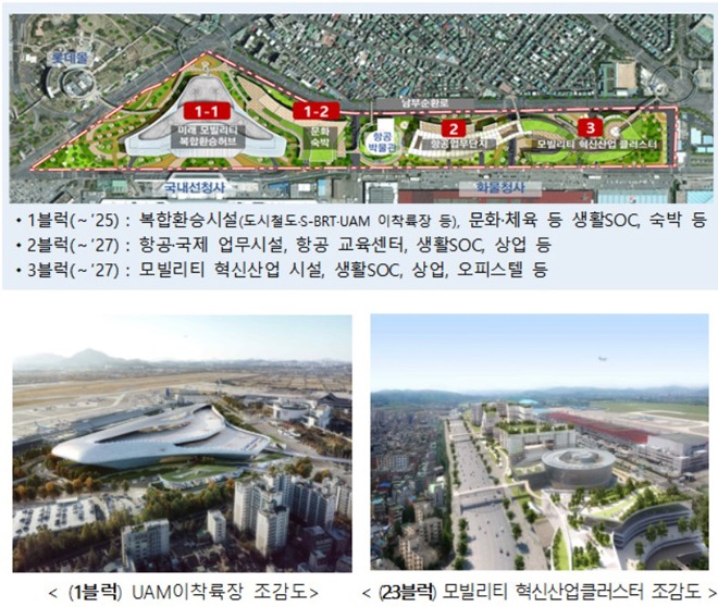 도시철도·간선급행버스(S-BRT, 부천대장-인천계양-김포공항 구간)·도심항공교통(UAM) 이착륙장 등이 연계된 미래형 교통 허브시설과 함께 항공 관련 업무·교육시설, 모빌리티 혁신산업 시설을 조성하고 지역에 부족한 생활SOC도 확충한다.