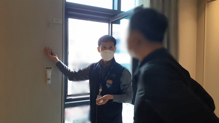 시공업체 B사는 호텔 소방공사를 하면서 218개 객실에 436개, 다른 시공업체 C사는 호텔 23개 객실에 46개의 미검정 간이완강기 지지대를 각각 설치했다.