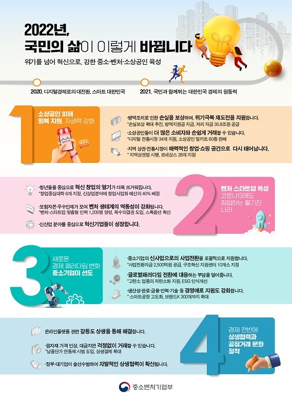 중소벤처기업부는 이 같은 내용을 포함한 ‘2022년도 중소벤처기업부 업무계획’을 22일 발표했다.