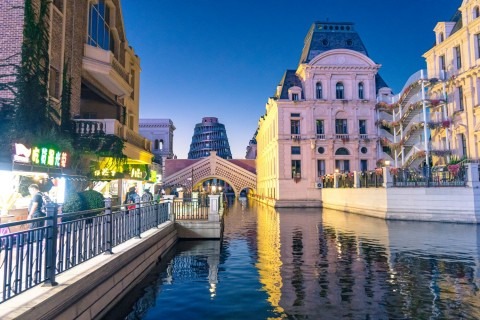 아시아에서 가장 큰 규모를 자랑하는 성해광장(싱하이광장)과 중국의 베네치아라 불리는 물의 도시 동방수성, 서양식 건물과 부두가 멋지게 조화를 이루는 어인부두, 19~20세기 러시아 건축물이 보존된 러시아 거리 등이 대표적인 관광 명소이다.