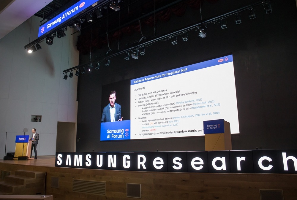 삼성리서치가 주관하는 ‘삼성AI포럼 2019’ 둘째 날에도 세계 각국에서 최근 활발하게 연구 활동을 하고 있는 AI 전문가들의 강연이 이어졌다. 미국 워싱턴대학교(University of Washington) 노아 스미스(Noah Smith) 교수, 카네기멜론대학교(Carnegie Mellon University)의 압히나브 굽타(Abhinav Gupta) 교수의 기조연설에 이어 영국 에든버러대학교(University of Edinburgh) 바이샥 벨(Vaishak Belle) 교수, 미국 뉴욕대학교(New York University)의 조안 브루나(Joan Bruna) 교수 등 석학들이 연단에 섰다.