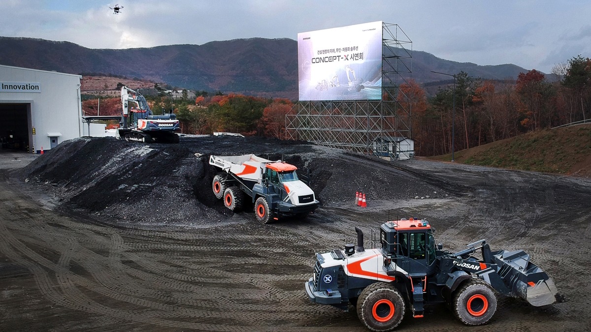 두산인프라코어는 20일, 충남 보령시 두산인프라코어 성능시험장에서 건설현장 종합 관제 솔루션 ‘컨셉트-엑스(Concept-X)’를 공개하고 시연회를 연다. 이날 행사에는 정관계 인사와 보쉬(Bosch), ASI, LG유플러스, 포테닛 등 ‘컨셉트-엑스’ 개발 관련 기업 및 기관, 학계 등에서 총 200여 명이 참석한다.