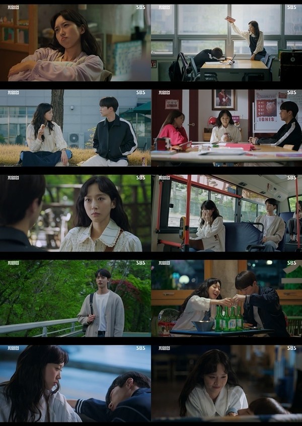 지난 10일(월) 방송된 SBS 월화드라마 ‘치얼업’ 3회에서는 도해이(한지현 분)가 단장 박정우(배인혁 분)로 인해 울고 웃고 기뻐하고 아파하는 스무 살 첫사랑의 시작이 그려졌다.