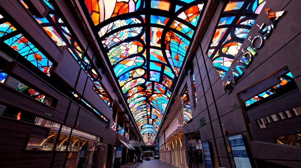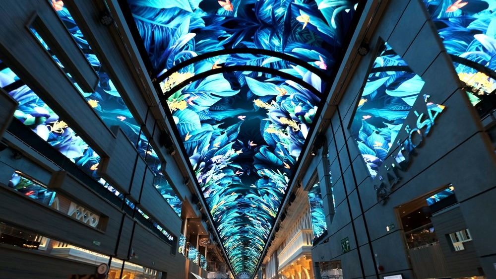 삼성전자는 그란디오사호 내부 갤러리아 천장에 전체 면적 580㎡의 커브드 LED 사이니지를 설치했다. 전체 길이는 93m로 영국 런던의 랜드마크인 빅벤의 높이와 유사하다.