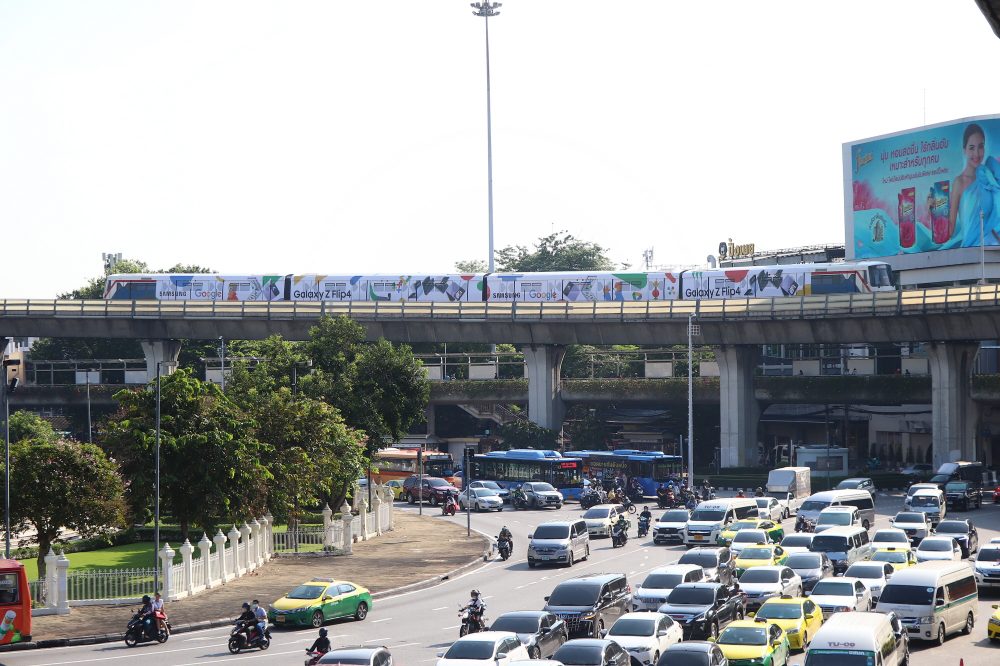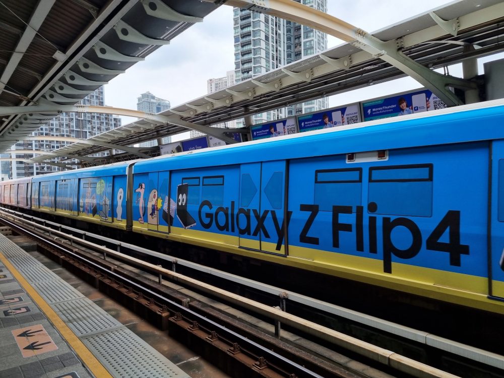 삼성전자는 태국 방콕의 중심지인 수쿰빗(Sukhumvit) 지역을 관통하는 수쿰빗 라인 스카이 트레인(Sukhumvit Line Sky Train)을 갤럭시 Z플립4 이미지로 랩핑(Wrapping) 했다고 밝혔다.