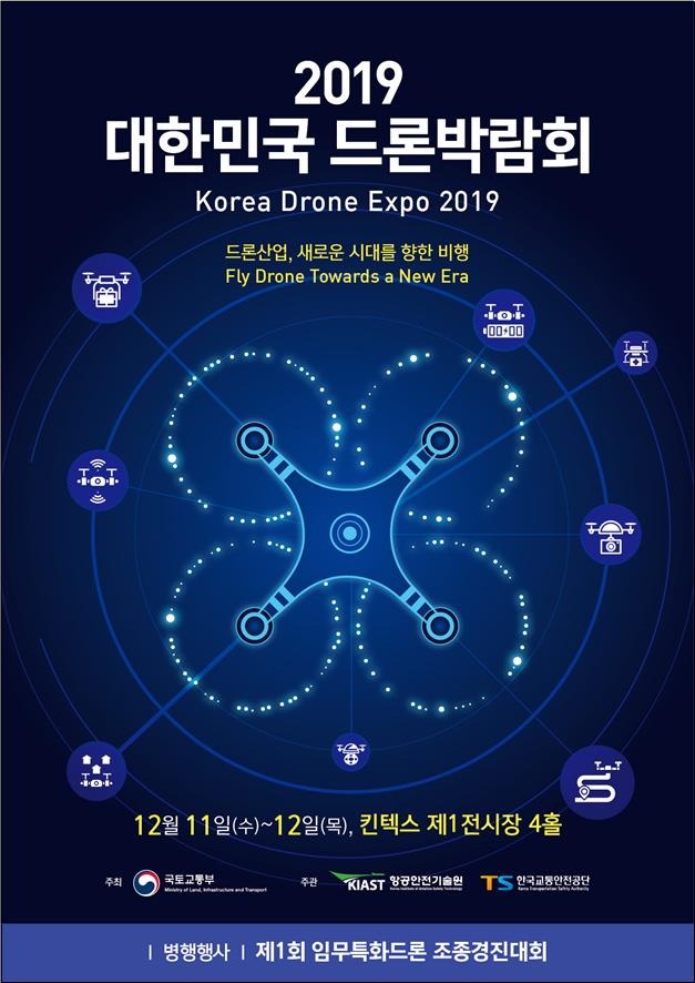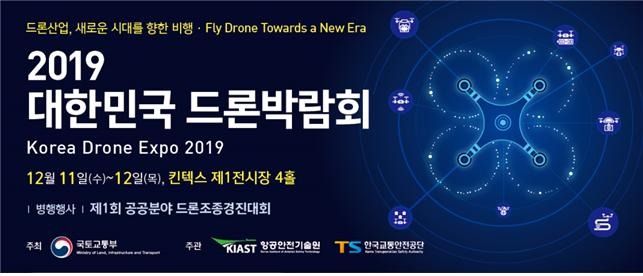 국토교통부는 ‘드론산업, 새로운 시대를 향한 비행’이라는 주제로 12월 11일(수)부터 12일(목)까지 이틀간 일산 킨텍스 제1전시장에서「2019 대한민국 드론박람회」를 개최한다.