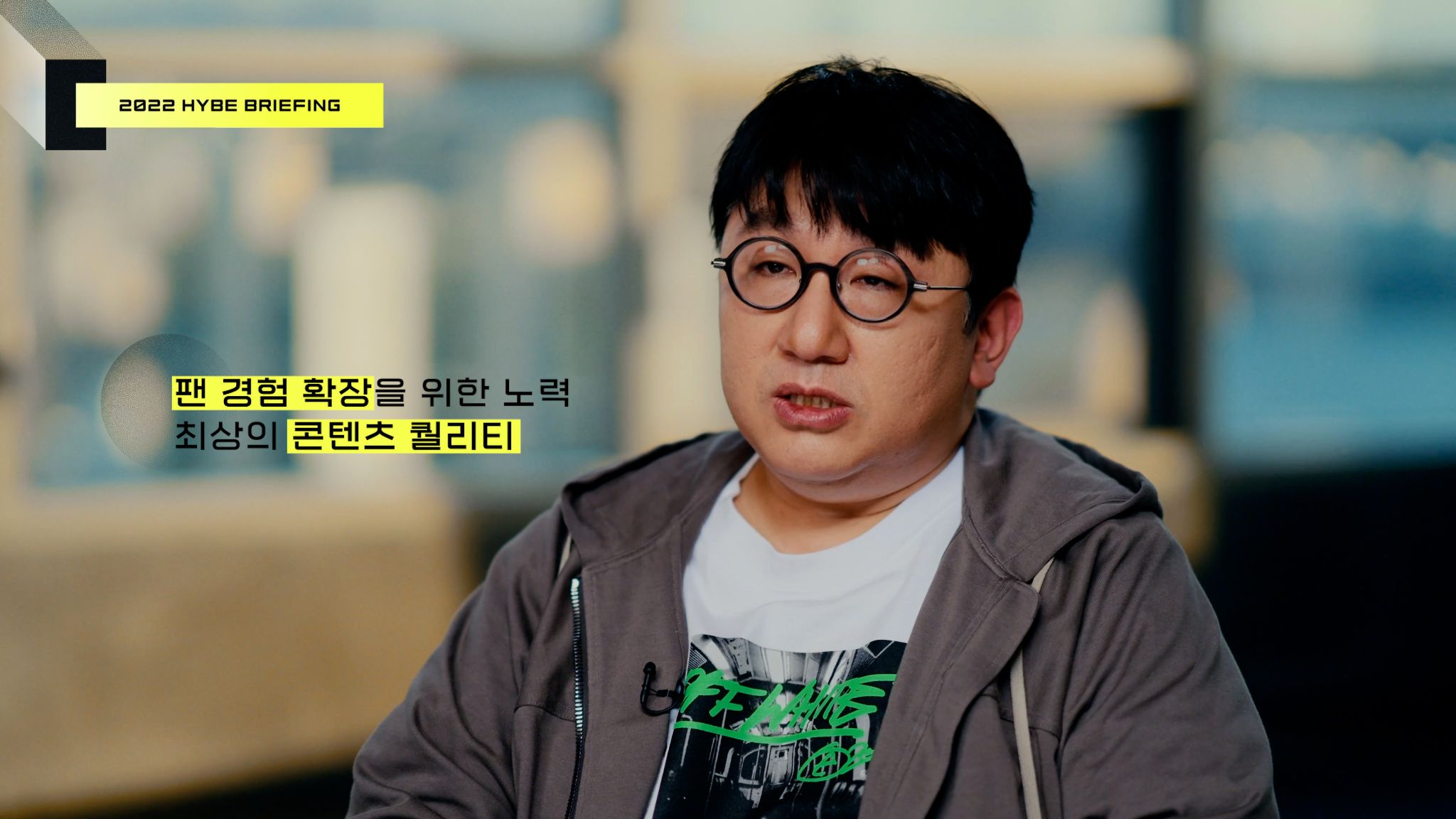하이브는 10일 하이브 레이블즈 유튜브 채널을 통해 ‘2022 공동체와 함께하는 회사설명회’ 영상을 전 세계 동시 송출했다. 이번 회사설명회 영상은 유기적인 협조 체제 아래 멀티 레이블 전략을 구사해 오고 있는 레이블과, 아티스트, 그리고 산하의 다양한 독립 법인·사업 부문이 어떻게 음악산업을 혁신하는지에 대한 내용을 담았다.