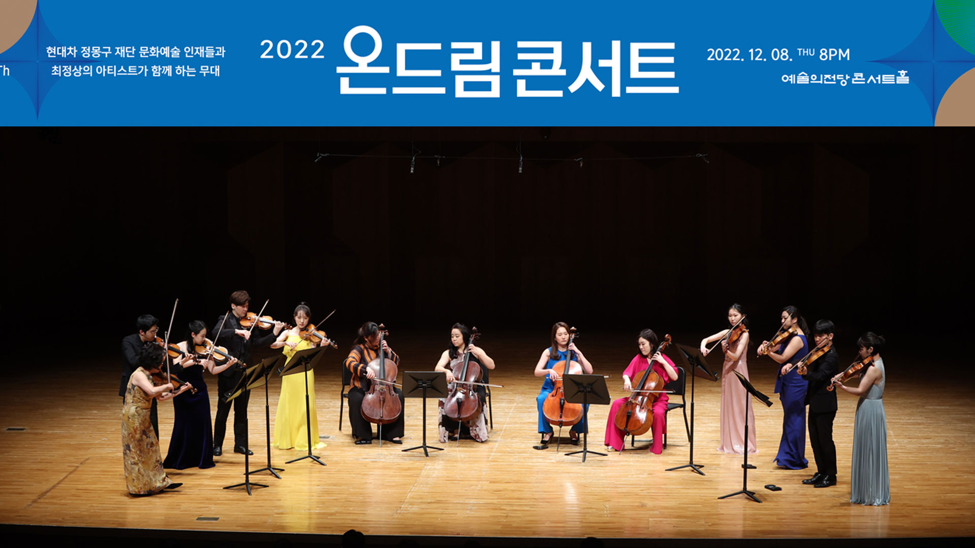 현대차 정몽구 재단은 지난 12월 8일 (목) 저녁, 예술의전당 콘서트홀에서 〈2022 온드림 콘서트〉를 개최했다. 〈2022 온드림 콘서트〉는 재단의 클래식 음악 전공 인재들을 위한 성장 프로그램인 ‘온드림 앙상블’과 교육자이자 연주자인 지도교수진이 함께 앙상블 활동의 하이라이트를 선보이는 무대이다.