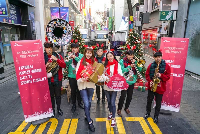 SK텔레콤은 25일까지 서울 주요 상권을 누비며 크리스마스 음악을 틀고, 어린이에게 선물을 나눠주는 ‘캐럴 트럭’을 운영하며 분위기를 띄운다. 이 트럭은 25일 이후에 전국 ‘5GX 부스트파크’에서 소상공인과 함께 연말연시 이벤트를 펼치게 된다.