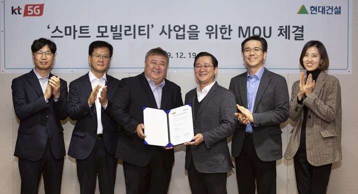 현대건설은 19일, KT와 서울 종로구 현대빌딩에서 ‘스마트 모빌리티 사업 협력을 위한 업무협약(MOU)’을 체결했다.