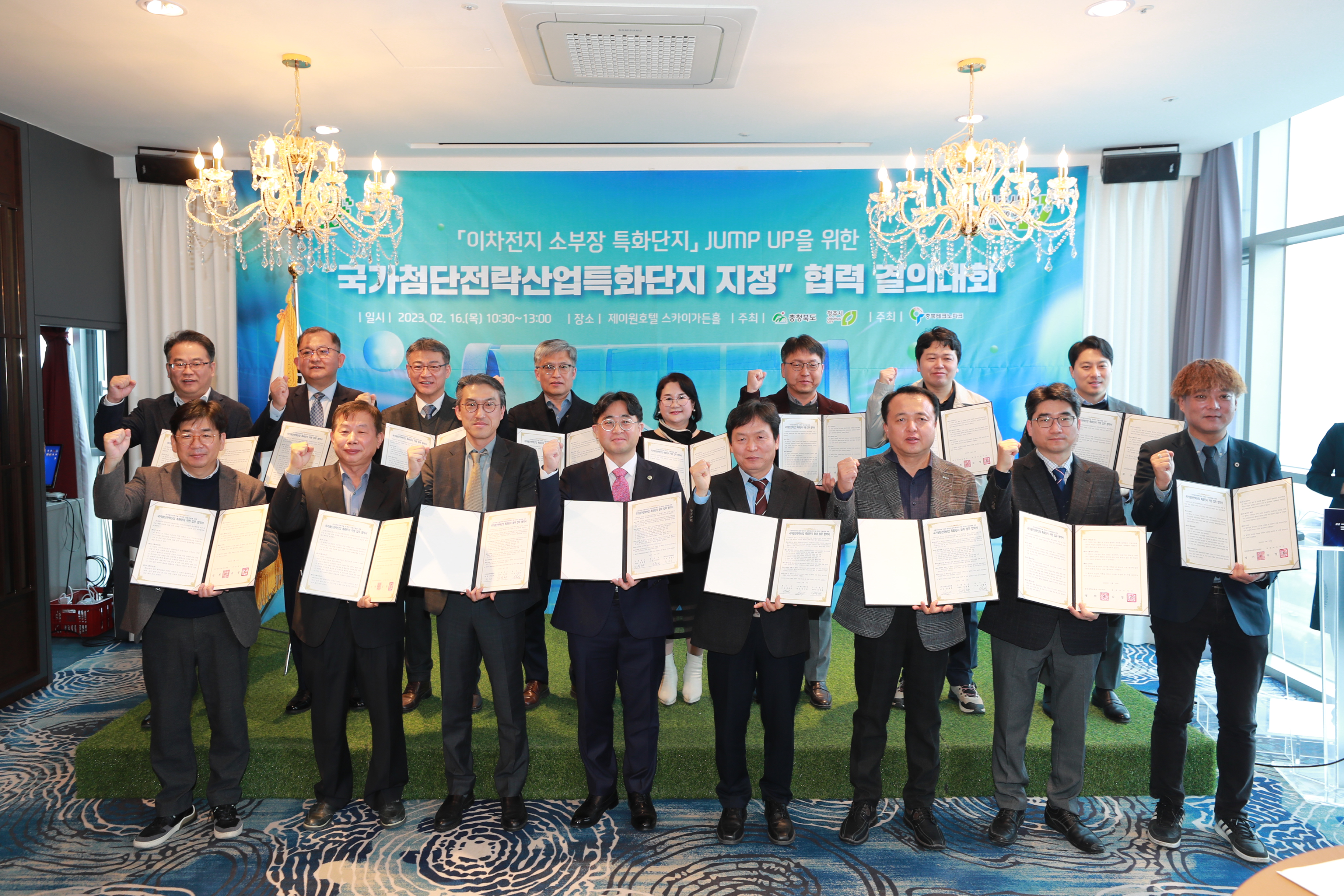 충청북도는 16일 오창(제이원호텔)에서 LG에너지솔루션, 충북대학교, 한국전자기술연구원 등 50명의 산학연 관계자가 참석한 가운데 ‘이차전지 첨단전략산업 특화단지 지정’ 전략을 공유하고 연대와 협력을 위한 결의대회를 개최했다.