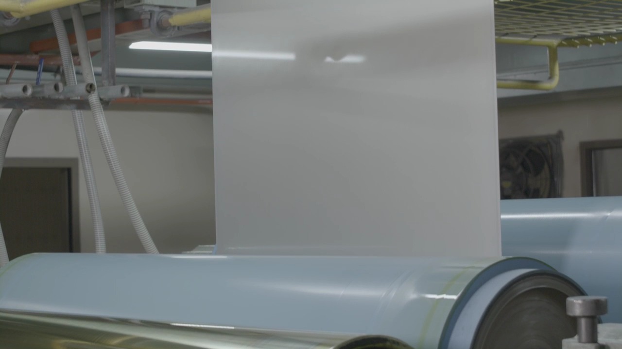 포스코스틸리온의 포항공장에서 컬러강판을 생산하고 있는 모습. 포스코스틸리온은 옥수수 속대에서 추출한 바이오매스 도료를 적용한 바이오매스 컬러강판을 개발했으며, 국내 최초로 미국 인증 기관 UL(Underwriters Laboratories Inc)의 시험을 통과해 친환경 제품으로 인정받았다.