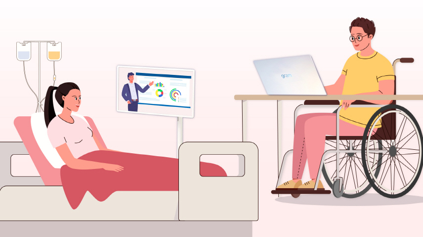 꿀맛무지개교실 학생 대부분은 거동이 불편하거나 장기간 병원 치료로 침대에 누워 교육을 받고 있다. LG 스탠바이미는 △이동이 자유로운 무빙스탠드, △손쉽게 조절하는 화면 높이·방향·각도, △손으로 터치해 간편하게 조작하는 화면 등 차별화된 폼팩터로 거동이 불편한 학생이 편리하게 온라인 수업을 받을 수 있다.