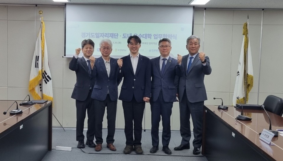 경기도일자리재단은 30일 부천시 일자리재단 중회의실에서 가톨릭대학교, 부천대학교, 중앙대학교(다빈치 캠퍼스), 한세대학교와 대학생 취업역량 강화와 미래인재 양성 지원을 위한 업무협약식을 진행했다.