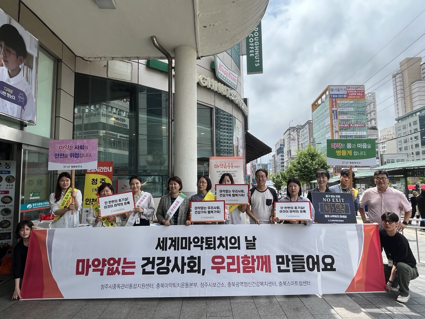충북도는 제37회 세계마약퇴치의 날(6.26.)을 맞아 3주간(6.26.~7.14.) 마약류 폐해에 대한 국민적 경각심 고취를 위하여 상담, 교육, 캠페인, 전광판 홍보 등을 실시하였다.