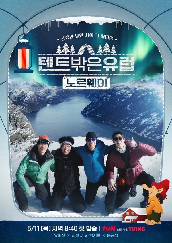 tvN '텐트 밖은 유럽 - 노르웨이 편'은 호텔 대신 캠핑장, 기차 대신 렌터카, 식당 대신 현지 마트를 이용하여 세상 자유로운 방식으로 유럽을 여행하는 힐링 캠핑 예능 프로그램이다.