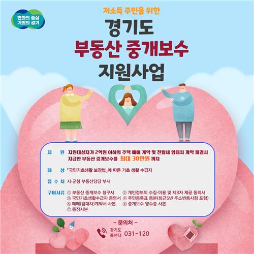 지난 2020년부터 시행 중인 '부동산 중개보수 지원사업'은 경기도에 거주 중인 국민기초생활 수급 주민이 2억 원 이하의 주택을 매매 계약하거나 전·월세 임대차 계약 체결할 때 발생하는 중개수수료를 최대 30만 원까지 지원해주는 제도다.