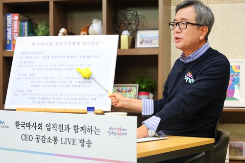 지난 14일 오후 4시, 한국마사회 방송센터 스튜디오에 생방송을 알리는 ON AIR 사인이 들어왔다. 정기환 회장이 직접 사내 라이브방송에 출연해 임직원과 소통하는 시간을 가진 것이다. 이번 라이브 방송은 CEO와 직원간의 교류를 강화하고, 보다 유연한 조직문화를 구축하기 위해 시행됐다.