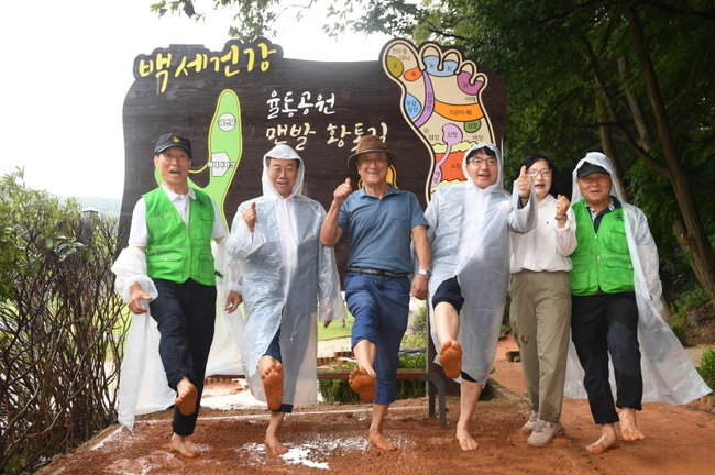 이번 율동공원 맨발 황톳길은 길이 740m, 폭 1.5m 규모로 조성됐다 .