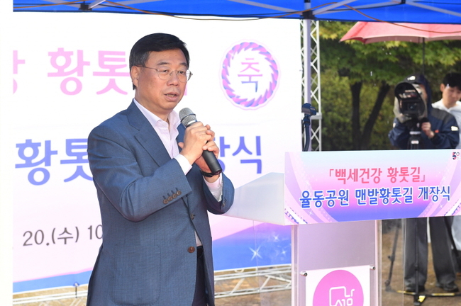 성남시는 민선 8 기 공약사업의 하나로 지역 내 6 곳에 ‘ 맨발 황톳길 조성 ’ 을 추진 중인 가운데 율동공원 ( 분당구 율동 ) 내 황톳길이 9 월 20 일 개장했다 .