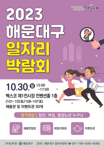 해운대구는 '오늘, 내일(My Job)을 만나다'라는 슬로건으로 오는 30일 오후 1∼5시 벡스코 제1전시장 컨벤션홀에서 '2023 해운대구 일자리박람회'를 개최한다.
