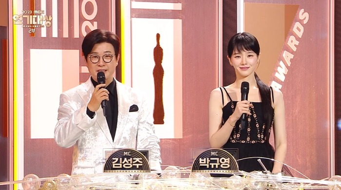 이날 박규영은 '2023 MBC 연기대상' MC로 등장, 첫 시상식 진행에 나섰다. "올해 MBC와 '오늘도 사랑스럽개'로 처음 인연을 맺었는데, 이렇게 MC까지 맡으면서 2023년을 MBC와 함께 마무리하게 되어서 정말 의미있는 것 같습니다"라는 소감을 전한 그는, 첫 MC 도전임에도 불구하고 안정적이고 깔끔한 진행을 선보여 많은 박수를 받았다.