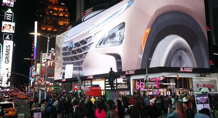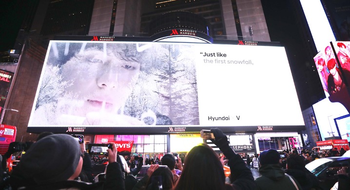 현대자동차가 21일(현지시각) 미국 뉴욕 타임스퀘어에서 방탄소년단이 출연한 ‘글로벌 수소 캠페인’ 영상을 최초로 공개했다.