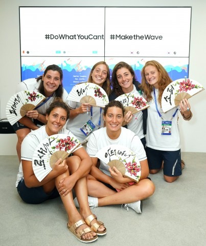 2019 광주 세계수영선수권대회 공식 후원사인 삼성전자는 ‘Make the Wave’ 캠페인의 하나로 선수촌 내 체험관에서 삼성전자의 최신 제품으로 음악을 감상할 수 있는 것은 물론 유니폼 교환식, 생일파티 등 각국의 선수들이 함께 교류할 수 있는 다양한 이벤트를 진행하고 있다. 특히 부채에 외국 선수들의 이름을 한글로 적어주는 캘리그라피가 많은 인기를 얻고 있다.