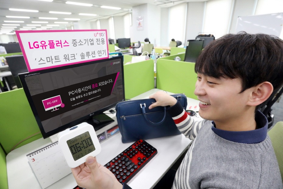 U+근무시간관리는 근무시간이 종료되면 컴퓨터 화면이 자동으로 차단되고, 외근 또는 재택 업무 시에는 모바일 앱(App.)을 통해 간편하게 출퇴근 위치 등록으로 근무시작을 입력할 수 있는 서비스다. 직원들은 근무시간을 보다 탄력적으로 사용하고, 최대 52시간인 법정 근로시간을 준수할 수 있게 된다.