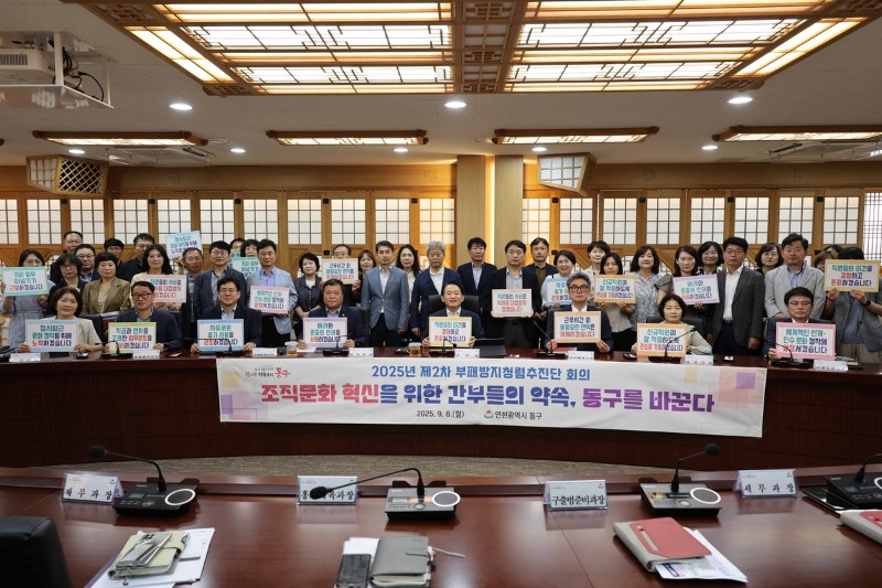 인천 동구(구청장 김찬진)는 지난 8일 구청 갈매기홀에서 ‘2025년 제2차 부패방지 청렴추진단 회의’를 열고 반부패·청렴 시책 추진 현황을 점검했다고 9일 밝혔다.