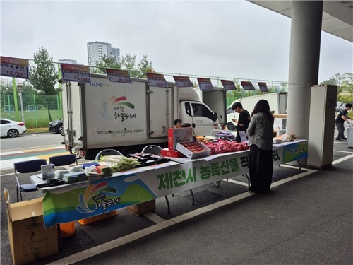 제천시는 지난 9월 30일 충북 오송단지에서 열린 식품의약품안전처 주관 직거래장터에 지역 농산물 판매업소 ‘하늘뜨레’와 함께 참여해, 오송단지 내 6개 입주기관 직원과 주민 등 2,000여 명을 대상으로 제천 특산품을 선보였다. 시는 이 자리에서 고향사랑기부제와 관광상품 등 주요 시정 홍보 활동도 병행하며 지역 알리기에 나섰다.