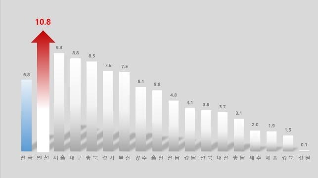 수도권 내에서도 인천은 서울(9.3%), 경기(7.6%)를 앞질렀으며, 전국에서 유일하게 두 자릿수 증가율을 유지하며 출생률 회복세를 이끌고 있다.