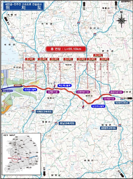 특히, 새만금 개발사업과 연계하여 물동량 증가에 대비하고, 동서 간 교통망 구축을 통해 지역경제 활성화에 기여하는 것은 물론 고군산 군도, 모악산도립공원, 전주 한옥마을 등 지역 주요 관광지와 접근성이 강화되어 전북지역 관광 활성화에 큰 역할을 할 것으로 기대된다.