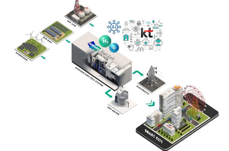 또한 양사는 KT 계열사 가운데 에너지 사용이 많은 건물에 연료전지를 설치해 에너지 비용을 절감하고, ‘수소시범도시’ 사업 협력도 추진할 계획이다.