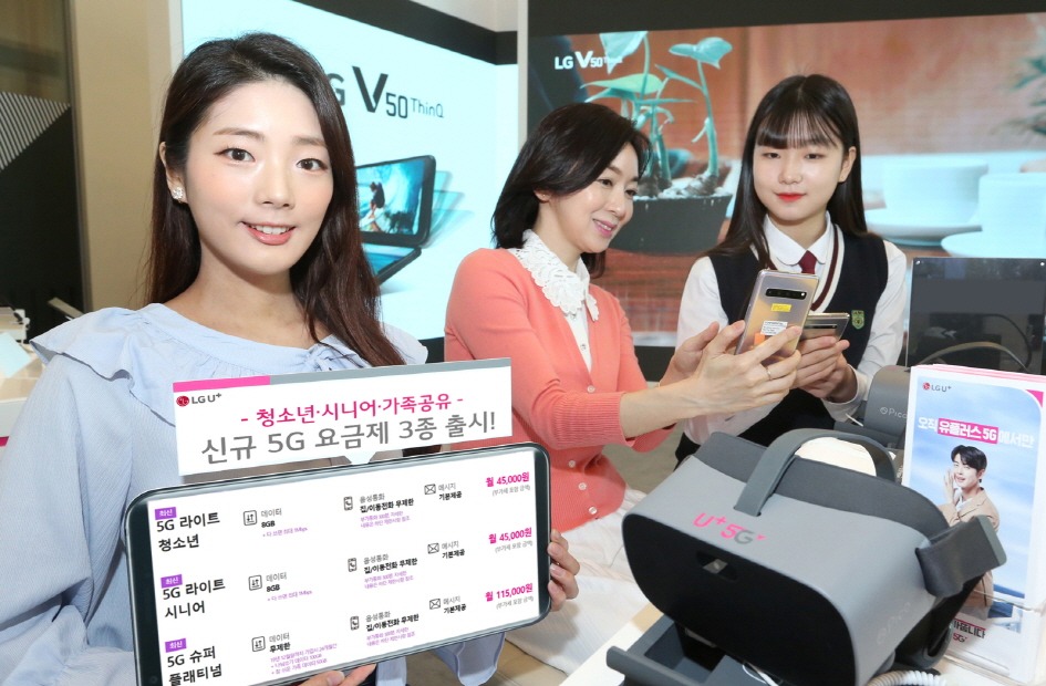 한편 LG유플러스는 지난 3월 29일, 5G 요금제와 신규 프로모션 9종을 가장 먼저 선보이며 5G 시장 경쟁의 포문을 열었다. 올 5월에는 가족 3명이 결합하면 '5G 프리미엄' 요금제를 각각 반값에 쓸 수 있는 가족 할인을 선보여 눈길을 끌었다.