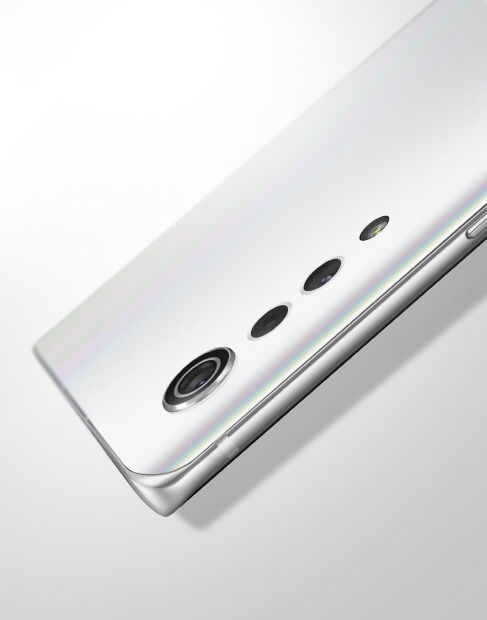 'LG 벨벳'은 전면 디스플레이 좌우 끝을 완만하게 구부린 '3D 아크 디자인'을 처음으로 적용한 데다, 후면 커버도 동일한 각도로 구부려 하단에서 보면 가로로 긴 타원형 모양이다. 타원형이기 때문에 손과 밀착되는 접촉면이 넓어져 착 감기는 '손맛'을 제공한다.