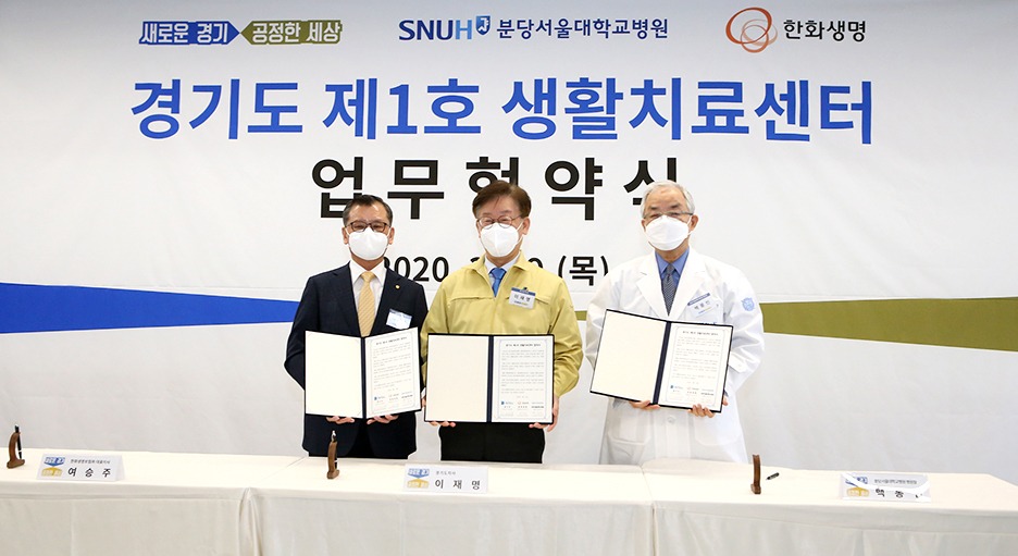 3월 19일(목) 한화생명은 경기도 및 분당서울대병원과 업무 협약식을 체결하고 3명의 코로나19 경증환자 입소와 함께 생활치료센터 운영을 시작했다. 한화생명은 라이프파크를 생활치료센터로 제공한 후 쌍방향 소통 가능한 실시간 화상강의와 온라인 FP교육을 활용해 교육공백을 최소화 했다.